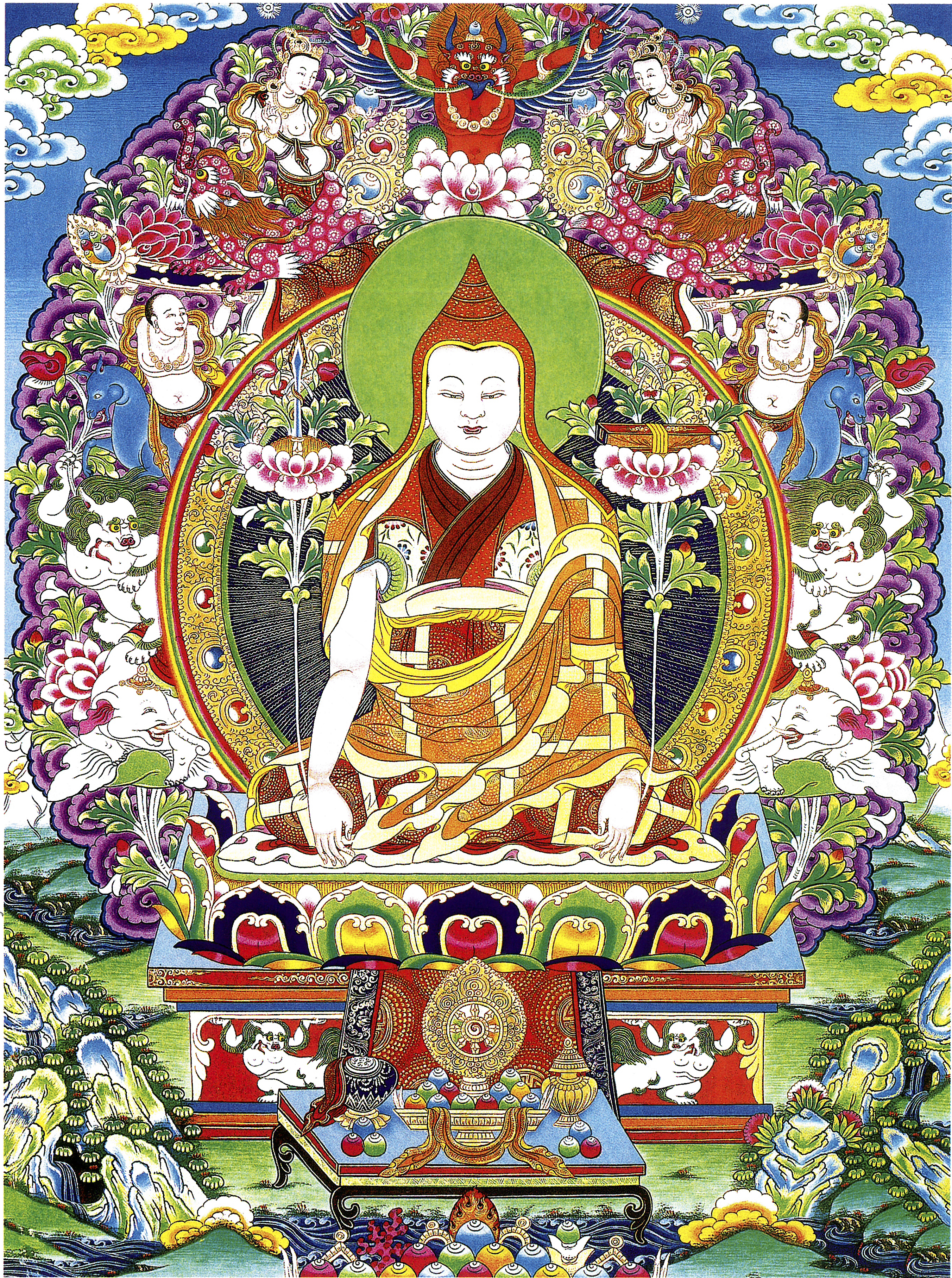 Chú thích:Cầu nguyện Tổ Longchenpa1 Sáu Bảo Trang của Diêm Phù Đề là sáu luận sư kinh điển nổi tiếng: Long Thọ, Thánh Thiên, Vô Trước, Thế Thân, Trần Na, Pháp Xứng.