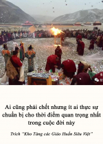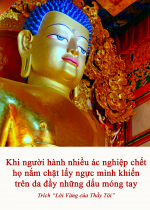 Khi người hành nhiều ác nghiệp chết, họ nắm chặt lấy ngực mình khiến trên da đầy những dấu móng tay. Khi nhớ lại mọi ác hạnh của mình, họ run sợ vì bị tái sinh trong những cõi thấp. Họ tràn đầy hối hận vì đã không thực hành Pháp trong khi có được sự tự do để làm điều đó, bởi đó là điều ích lợi duy nhất vào lúc chết. Khi nhận ra điều đó, họ cảm thấy vô cùng đau khổ. Đó là lý do tại sao họ lại đấm ngực và để lại đầy những dấu móng tay ở...