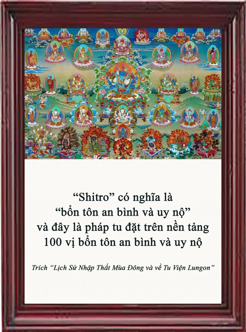 “Shitro” có nghĩa là “bổn tôn an bình và uy nộ” và đây là pháp tu đặt trên nền tảng 100 vị bổn tôn an bình và uy nộ