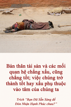 Bản thân tài sản và các mối quan hệ chẳng xấu, cũng chẳng tốt; việc chúng trở thành tốt hay xấu phụ thuộc vào tâm của chúng ta