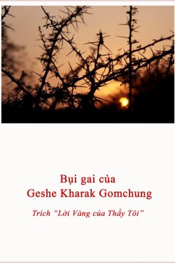Thật ra thì bạn đã có thể thấm nhuần được ý niệm về lẽ vô thường một cách sâu sắc như thế nào? Bạn nên trở thành giống như Geshe Kharak Gomchung; Ngài đi vào những vùng núi non cô tịch ở Jomo Kharak trong tỉnh Tsang để thiền định. Trước hang của Ngài có một bụi gai, nó vướng vào quần áo Ngài ...