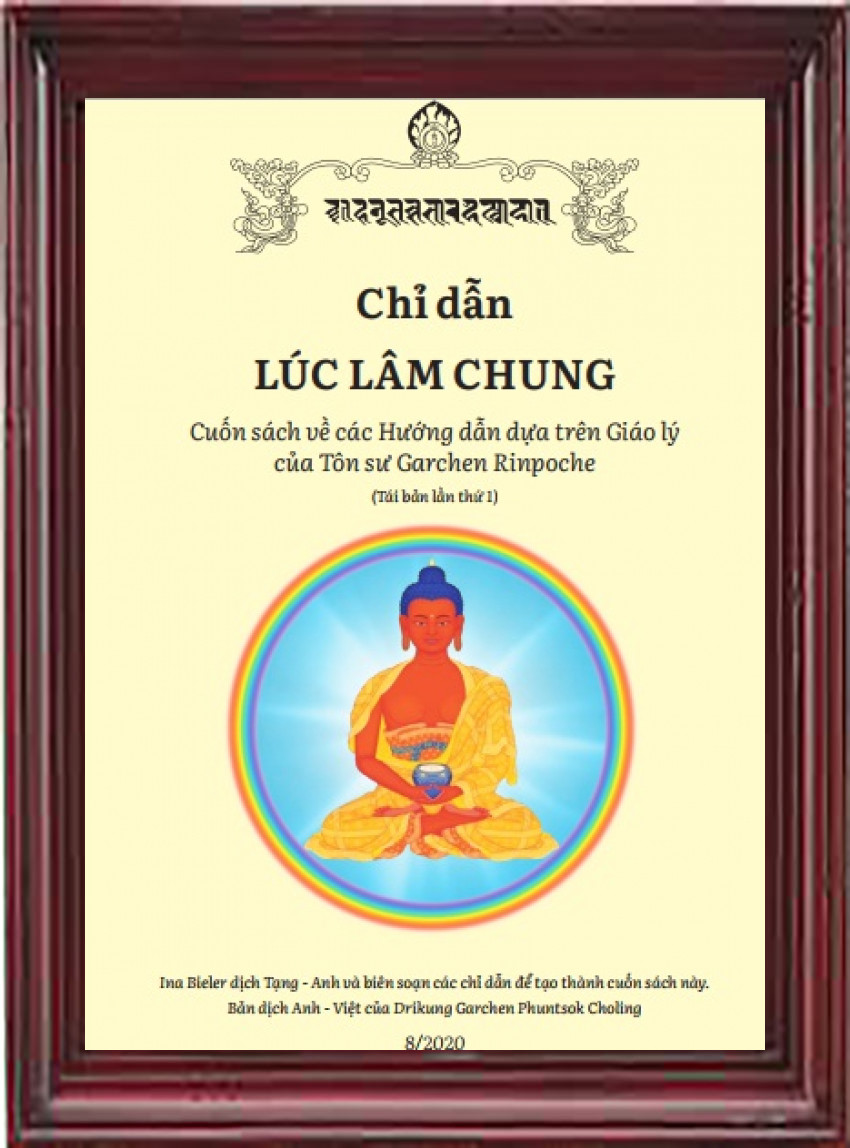 Cuốn sách nhỏ này ghi lại các chỉ dẫn về thời điểm lâm chung do Tôn sư Garchen Rinpoche ban dạy. Cuốn sách đưa ra các chỉ dẫn quý báu về cách hỗ trợ người chết theo các thực hành của Truyền thống Phật giáo Tây Tạng đã được tổng hợp trong cuốn Tử thư Tây Tạng. Nội dung [trong cuốn sách nhỏ này] được sắp xếp theo các giai đoạn của sự chết – trước, trong và sau khi chết – với các chỉ dẫn đối với ngữ, thân và tâm, và có một phần ngắn gọn về Các Giai Đoạn Tan Rã để tham khảo. Hầu hết các hình ảnh và các lời nguyện được đề cập trong cuốn sách được bao gồm ở phần cuối sách đê thuận tiện cho việc tham khảo. Mục đích của cuốn sách này đê giúp người đọc chuẩn bị cho sự chết và/ hoặc từ bi hỗ trợ người khác trong giai đoạn chuyển tiếp của họ. Bản dịch tiếng Anh và biên soạn cuốn sách này do Ina Bieler thực hiện, và do CJ Ondek và Dan Clarke hiệu đính (giáo lý về Phật A Di Đà), trừ những phần được chú thích khác đi. Nguyện cho cuốn sách nhỏ này mang lại lợi lạc lớn lao cho mọi chúng sinh trong khắp tam thiên đại thiên thế giới.