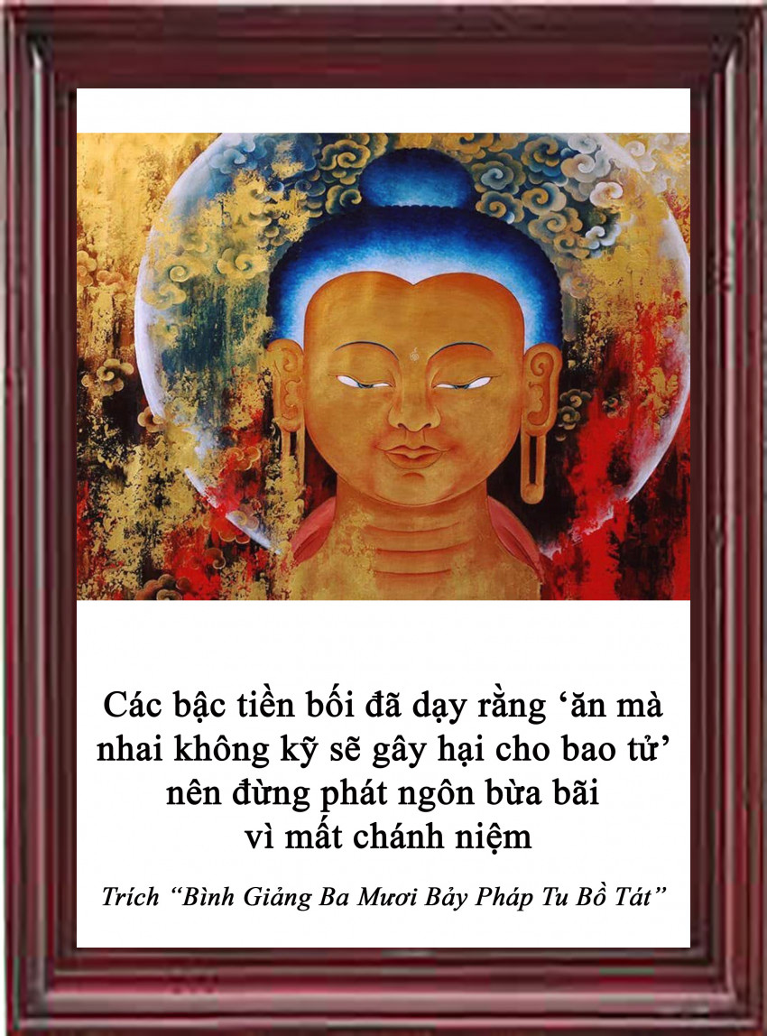 3. Các bậc tiền bối đã dạy rằng ‘ăn mà nhai không kỹ sẽ gây hại cho bao tử’ nên đừng phát ngôn bừa bãi vì mất chánh niệm