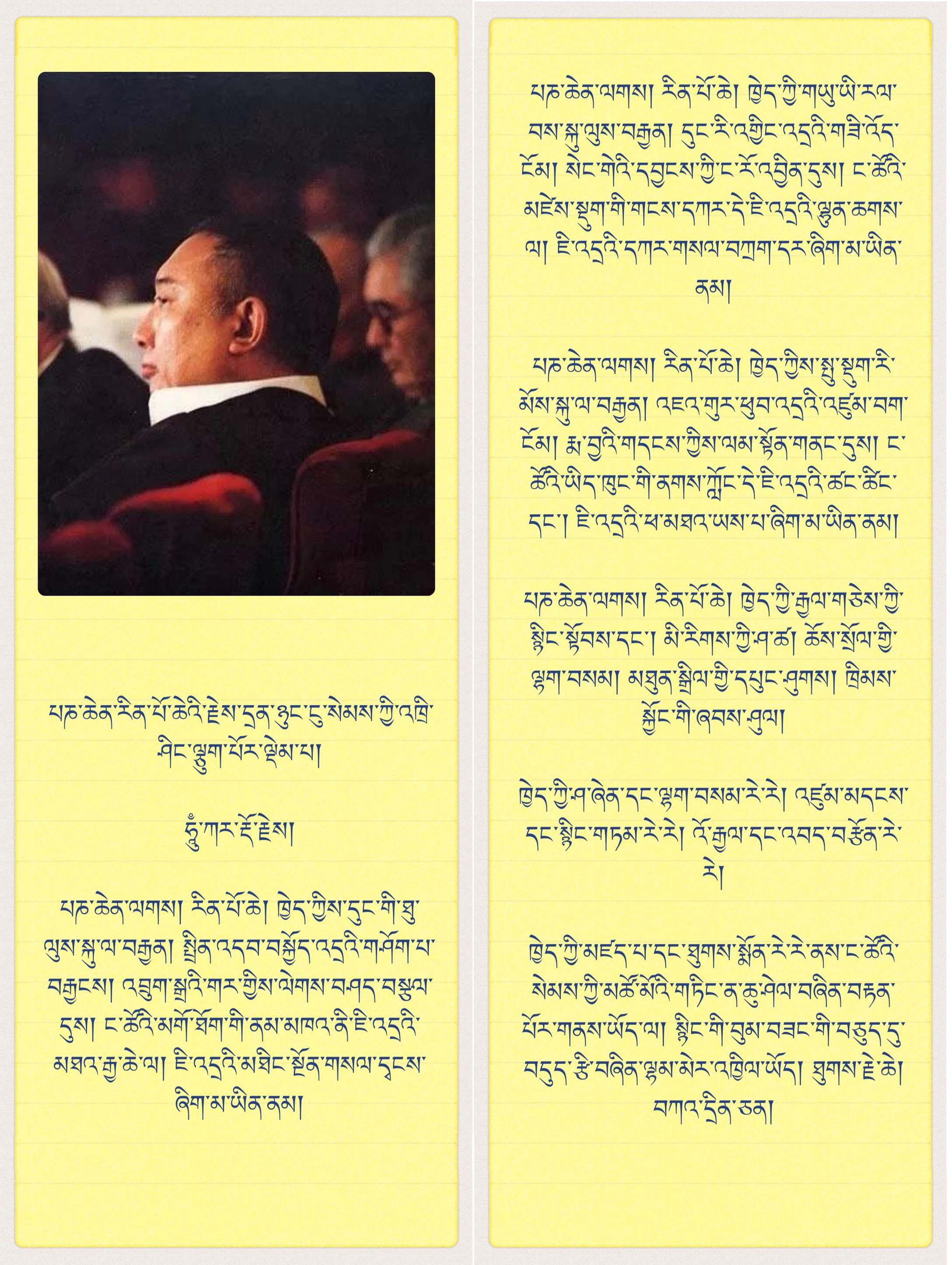 Oh, Panchen la! All [the memories of You] are all crystal clear under the bottom of our mind: your brave patriotism, your compassionate love to our race, your pure dedication to Dharma, your powerful arms of solidarity, your foot prints of abidance to the laws,
