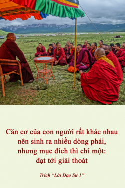 Căn cơ của con người rất khác nhau nên sinh ra nhiều dòng phái, nhưng mục đích thì chỉ một: đạt tới giải thoát