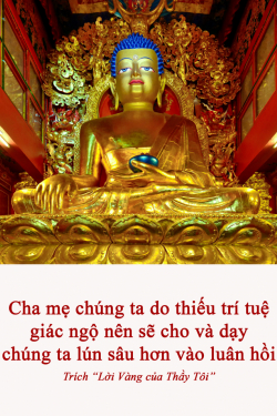 Cha mẹ chúng ta do thiếu trí tuệ giác ngộ nên sẽ cho và dạy chúng ta lún sâu hơn vào luân hồi