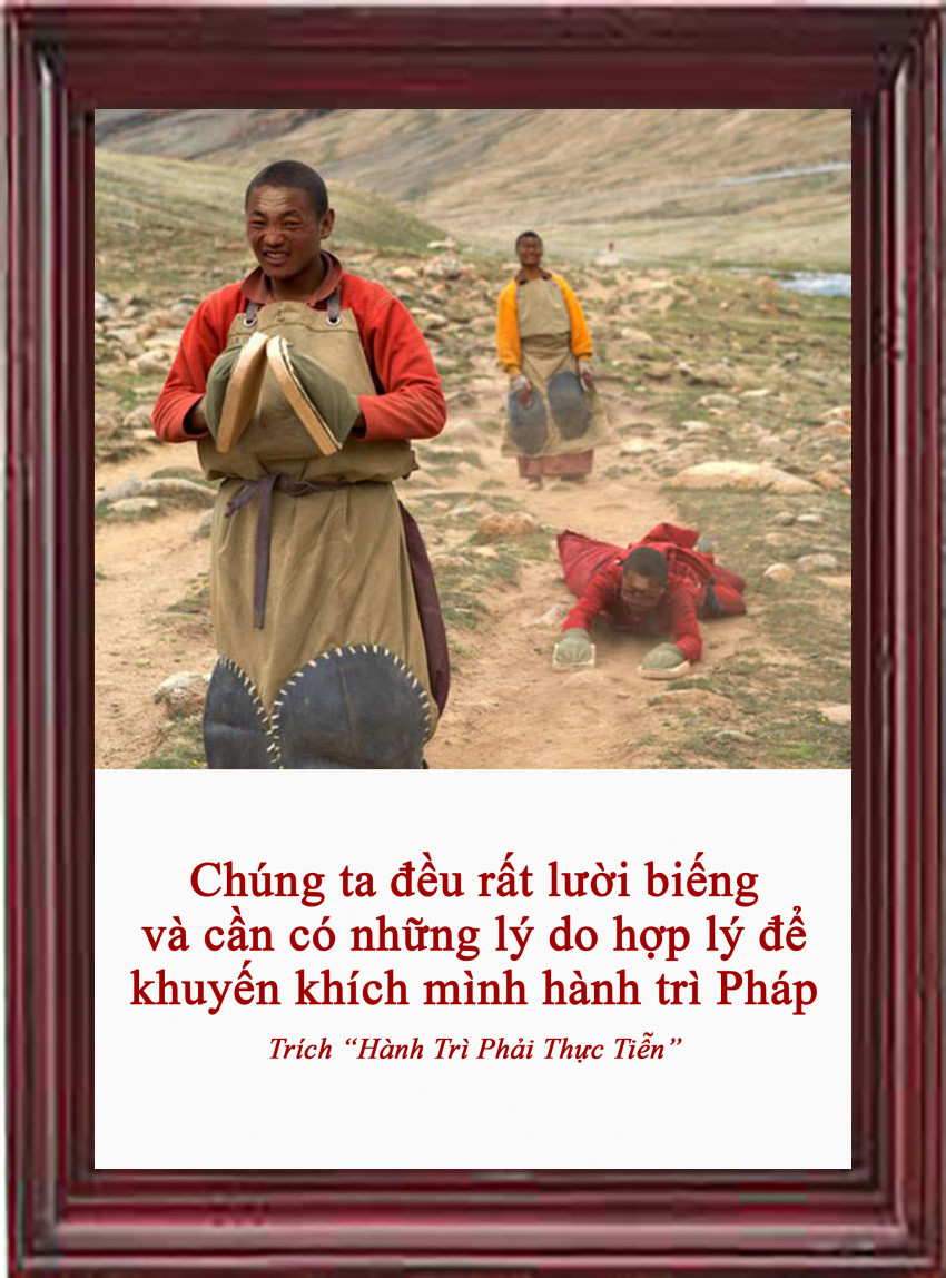 Tại sao sự việc lại như thế? Sự thật là chúng ta đều rất lười biếng và cần có những lý do hợp lý để khuyến khích mình hành trì Pháp. Nếu không, chúng ta sẽ không có động cơ nào để thực hành bất cứ pháp tu nào. Khi nói về hành trì, tôi không chỉ đề cập đến hành trì nghiêm túc như hành thiền, lễ lạy và tụng niệm, tôi nghĩ rằng các thiện hạnh như giúp đỡ các chúng sanh khác, mang lại hạnh phúc cho chúng sanh, thực hiện tất cả những điều đức hạnh cũng đều được bao gồm trong việc hành trì.
