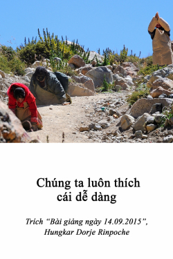 Tại sao chúng ta không thích pháp luyện tâm? Hoặc ta biết pháp luyện tâm nhưng mà không đưa nó vào thực hành một cách thành công? Lý do chính yếu là chúng ta luôn luôn thích cái dễ dàng. Ta thích mọi thứ dễ dàng cho bản thân, cho cuộc sống của riêng mình, mặc dù ta nói mình là người tu. Vì vậy chúng ta luôn tìm kiếm cái gì đó nhanh chóng hơn, cao siêu hơn, thâm diệu hơn. Nhưng chúng ta đang sai. Bởi vì cái cao siêu hơn, thâm diệu hơn nó không phù hợp với trình độ và căn cơ của chúng ta.