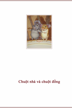 Một con chuột nhà một hôm ghé thăm bạn ở đồng quê. Bữa trưa, Chuột Đồng dọn bữa ăn chỉ toàn là thân, rễ, và lơi bắp, với một chút nước lạnh để uống. Chuột Nhà chỉ ăn lấy lệ, nhấm nháp một chút món này, một chút món kia, và chẳng cần giấu giếm gì nó nói rằng nó ăn với chuột đồng một chút là chỉ để cho vui thôi.