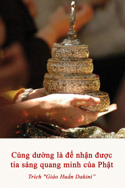 Tam Bảo không cần một chút gì trong chén nước hay sự tôn kính. Mục tiêu của việc cúng dường là để cho con nhận được những tia sáng quang minh của chư Phật. Về việc cúng dường những thức ăn uống tốt nhất, hãy làm ba mâm và trì tụng OM AH HUM ba lần ...