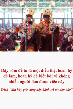 Dậy sớm [để tu hành] là một điều thật hoan hỷ để làm, hoan hỷ để biết bởi vì không nhiều người có khả năng làm được việc này. Không nhiều người thực sự bỏ chút công sức của họ vào việc tu hành. Cho dù họ có thể nói họ đang tu nhưng họ chỉ tu miệng mà thôi.