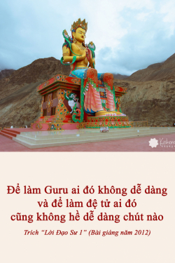 Chữ “Guru” rất nặng. “Guru” có nghĩa là một ai đó cao hơn tất cả mọi người khác. Cái gì làm cho Guru cao hơn hết thảy mọi thứ? Để làm Guru ai đó không dễ dàng. Để làm đệ tử ai đó cũng không hề dễ dàng chút nào. Vì để làm một đệ tử, làm một người tu, thì phải có đủ các phẩm chất: trung thực, hiểu biết, thông tuệ, siêng năng v.v. Những phẩm chất này làm nên người đệ tử đích thực.
