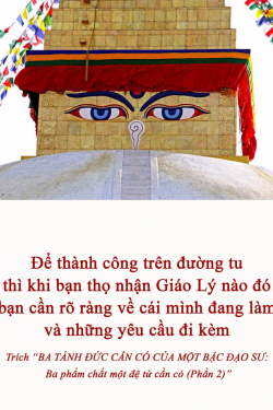 Để thành công trên đường tu thì khi bạn thọ nhận Giáo Lý nào đó bạn cần rõ ràng về cái mình đang làm và những yêu cầu đi kèm