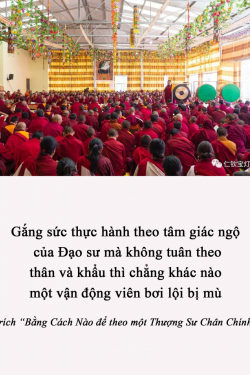 Gắng sức thực hành theo tâm giác ngộ của Đạo sư mà không tuân theo thân và khẩu thì chẳng khác nào một vận động viên bơi lội bị mù