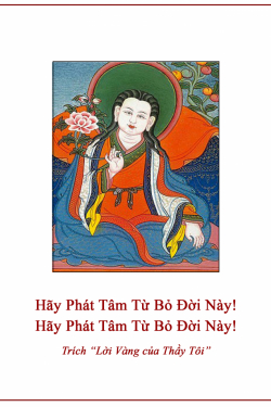“Tu sĩ đáng kính,” Ngài Geshe trả lời, “hãy [phát tâm] từ bỏ đời này! Hãy [phát tâm] từ bỏ đời này!”