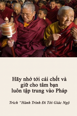 Giống như mọi sự từng cái một luôn luôn tiến gần tới sự tan rã cuối cùng của chúng không chút động tâm, cuộc đời của riêng bạn thì cũng thế, giống như một ngọn đèn bơ, nó sẽ nhanh chóng lụi tàn. Thật là ngu xuẩn khi nghĩ rằng trước tiên bạn có thể hoàn thành mọi công việc của bạn và sau đó lui về sử dụng những giai đoạn sau của đời mình để thực hành Pháp. Bạn có thể chắc chắn rằng bạn sẽ sống lâu? Cái chết đã chẳng tấn công người trẻ cũng như người già? Vì thế, dù bạn đang làm gì, hãy nhớ tới cái chết và giữ cho tâm bạn luôn tập trung vào Pháp.