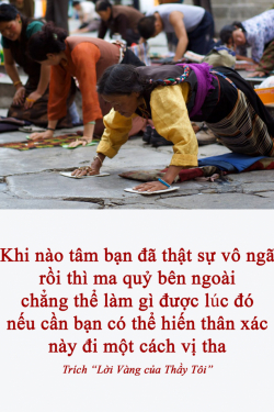 Khi nào tâm bạn đã thật sự vô ngã rồi thì ma quỷ bên ngoài chẳng thể làm gì được lúc đó nếu cần bạn có thể hiến thân xác này đi một cách vị tha
