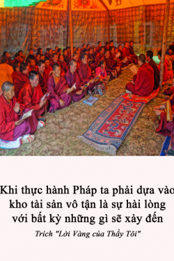 Khi thực hành Pháp ta phải dựa vào kho tài sản vô tận là sự hài lòng với bất kỳ những gì sẽ xảy đến