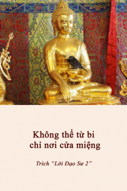 Ta nói rằng ta mong muốn chúng sinh thoát khổ. Nhưng chỉ nghĩ không thôi chưa đủ, mà phải biến lời nói thành hành động. Trong tâm ta mong muốn hạnh phúc cho chúng sinh, và bên ngoài ta phải hết sức cẩn trọng không làm hại chúng sinh khác. Nhưng với căn cơ cấp độ như chúng ta, chúng ta không phải lúc nào cũng làm được điều này. Vì cái nhìn tiêu cực, bất tịnh mà ta gây hại cho người khác ...