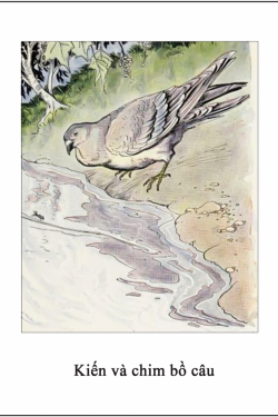 Một con kiến đi đến bờ sông để thoả mãn cơn khát của mình bị trượt chân xuống dòng nước xiết và bị cuốn trôi, đang lúc sắp bị chết đuối thì một con chim bồ câu đang đậu trên một cành cây vươn ra trên mặt nước nhìn thấy bèn mổ lấy một chiếc lá và thả xuống dưới dòng nước cho trôi theo ...