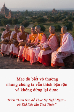 "Mặc dầu biết rằng vạn pháp là vô thường, nhưng chúng ta vẫn nuôi thói quen thích bận rộn nhiều chuyện, càng nhiều chuyện càng tốt. Và chúng ta thích bận rộn đến mức không thể dừng lại được."