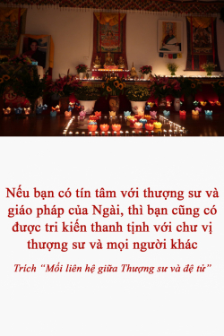 Trong Phật Giáo Kim Cương Thừa Tây Tạng có câu: “Chừng nào bạn có tín tâm đối với thượng sư và giáo pháp của Ngài, chừng đó chắc chắn bạn cũng sẽ có được chính kiến thanh tịnh đối với chư vị thượng sư và mọi người khác.”
