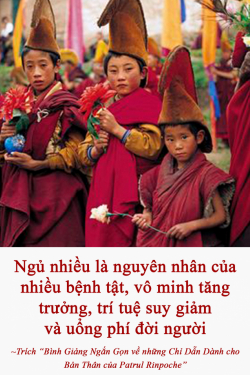 "Đức Longchenpa đã chỉ dẫn chúng ta rằng ngủ quá nhiều tạo ra nhiều kết quả bất lợi, ví dụ khiến vô minh tăng trưởng. Nó cũng là nguyên nhân của nhiều bệnh tật, trí tuệ suy giảm và khiến đời người quý giá bị lãng phí."
