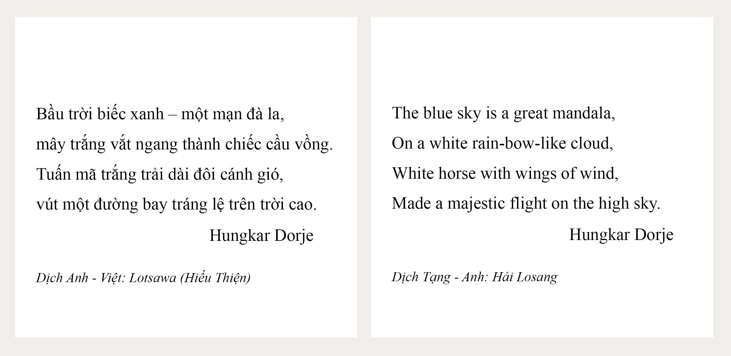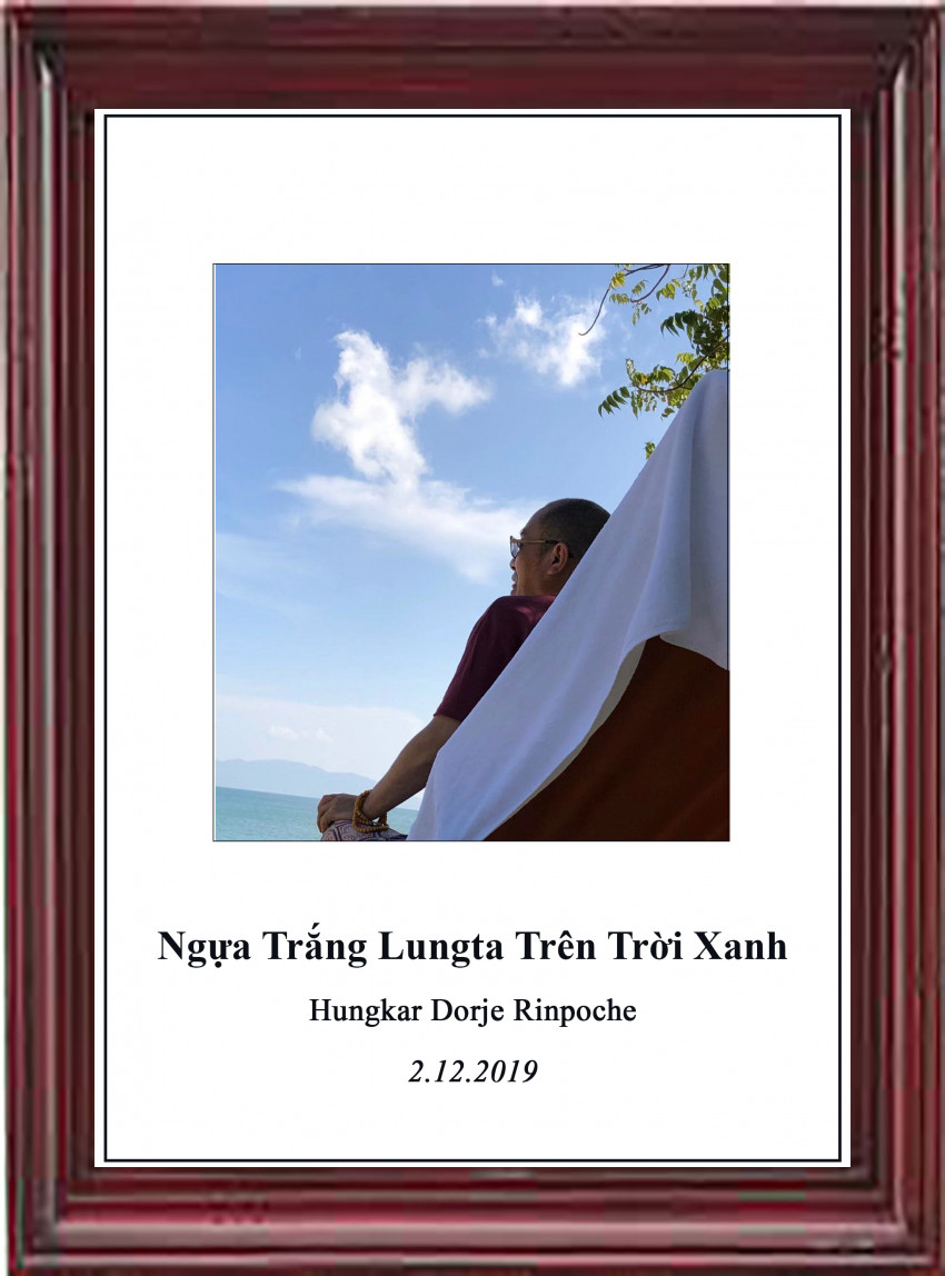 BBT LHQ xin trân trọng gửi tới quý độc giả bài thơ “Ngựa Trắng Lungta Trên Trời Xanh”[1] của Ngài Hungkar Dorje Rinpoche viết và gửi tặng tất cả ngày 2.12.2019 cùng bức ảnh chụp vầng mây kiết tường hình Linh Mã (Tạng:Lungta, Anh: Wind Horse) – tại Việt Nam trong chuyến hoằng Pháp vừa qua.