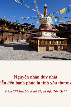 Nguyên nhân duy nhất dẫn đến hạnh phúc là tình yêu thương và nguyên nhân duy nhất dẫn đến khổ đau là sự chấp ngã. Nếu con hiểu được điều này thì con sẽ hoàn toàn hiểu rõ sự vận hành của nghiệp và luật nhân quả. ‘Mọi khổ đau đều đến từ sự mưu cầu cho hạnh phúc riêng tư.