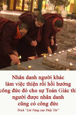 Nhân danh người khác làm việc thiện rồi hồi hướng công đức đó cho sự Toàn Giác thì người được nhân danh cũng có công đức