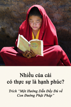 Dĩ nhiên là một số của cải vật chất rất ích lợi, nhưng ta nên truy xét xem chúng có phải là cội gốc đích thực của hạnh phúc hay không. Chẳng hạn như tôi có thể không có một chiếc xe hơi, vì thế tôi muốn có một chiếc. Sau đó tôi nghĩ: “Tôi muốn đi lại tự do và đi bất kỳ nơi đâu mà không tùy thuộc vào người khác.” Mặc dù thế, ngay khi tôi có một chiếc xe hơi, tôi phải lo lắng về việc bảo hiểm và xăng dầu. Và nếu chiếc xe có một vết trầy, tôi sẽ không thích nó. Ta bắt đầu với một nỗi khổ, một chiếc xe hơi, và điều đó lập tức bắt đầu việc tạo lập nhiều nỗi khổ khác. Điều này không có nghĩa là ta không nên sở hữu một chiếc xe hơi, nhưng bao giờ ta còn ở trong sinh tử thì ta không thể tránh được sự không mãn nguyện.