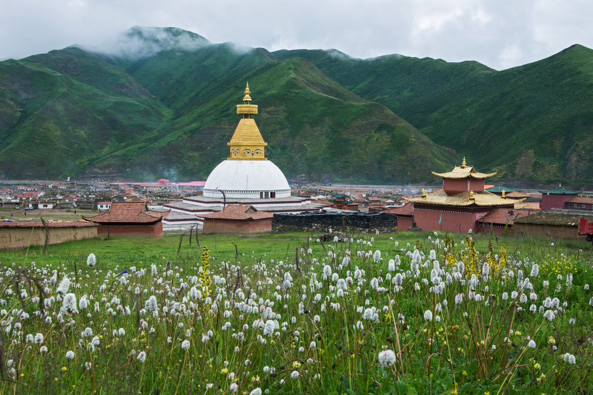 Buildings are much more difficult to maintain on the high land of the Tibetan Plateau. The Great Stupa was last repaired in 2006-2007, and now we have no option but to repair it again. This is the third time we’ve repaired it. The second time was a very big repair, that was really almost like rebuilding. This is not only repair now, but addition of sacred artwork to white stone.