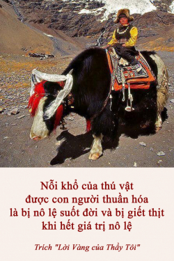 Nỗi khổ của thú vật được con người thuần hóa là bị nô lệ suốt đời và bị giết thịt khi hết giá trị nô lệ