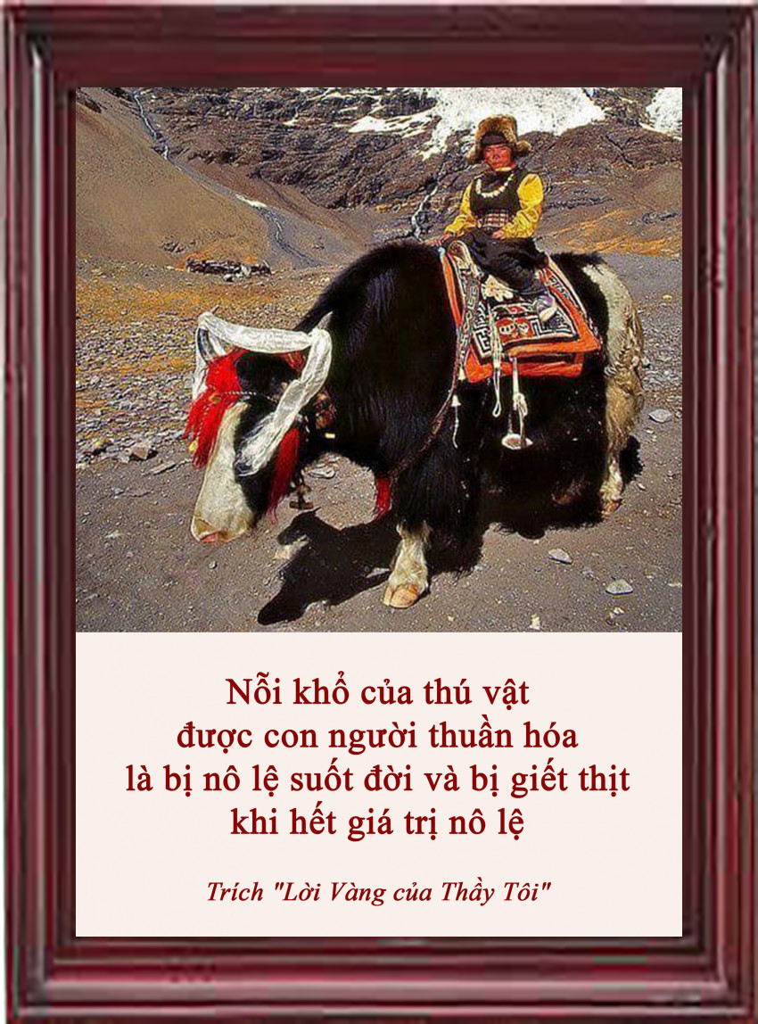 Nỗi khổ của thú vật được con người thuần hóa là bị nô lệ suốt đời và bị giết thịt khi hết giá trị nô lệ