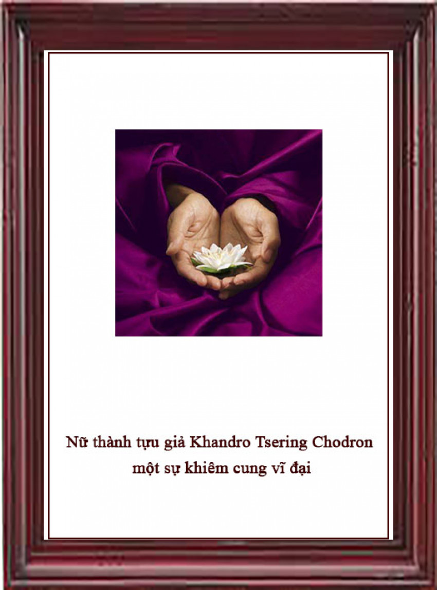 Bản tiểu sử này được dịch và hiệu đính để dâng cúng lên ngày Dakini 29/5/2016. Khandro Tsering Chodron là hiện thân của Dakini trong thân tướng con người, cuôc đời của Khandro đã minh chứng cho Giáo Pháp của Đức Phật thật hoàn hảo khi người ta đem vào thực hành và bản chia sẻ của Đức Sogyal Rinpoche về cuộc đời của Khandro thực sự xúc động và cầu mong rằng những ai có duyên đọc bản chia sẻ này sẽ được nguồn cảm hứng để thực hành giáo Pháp thâm diệu của Đức Phật sớm giải thoát khỏi mọi đau khổ và tăng trưởng những phẩm tính hành động để làm lợi ích cho chúng sinh. Nhờ công đức nhỏ nhoi này với lòng bi mẫn cầu mong một trong những hóa thân của Khandro Tsering Chodron sẽ hiện lộ tại Việt Nam.