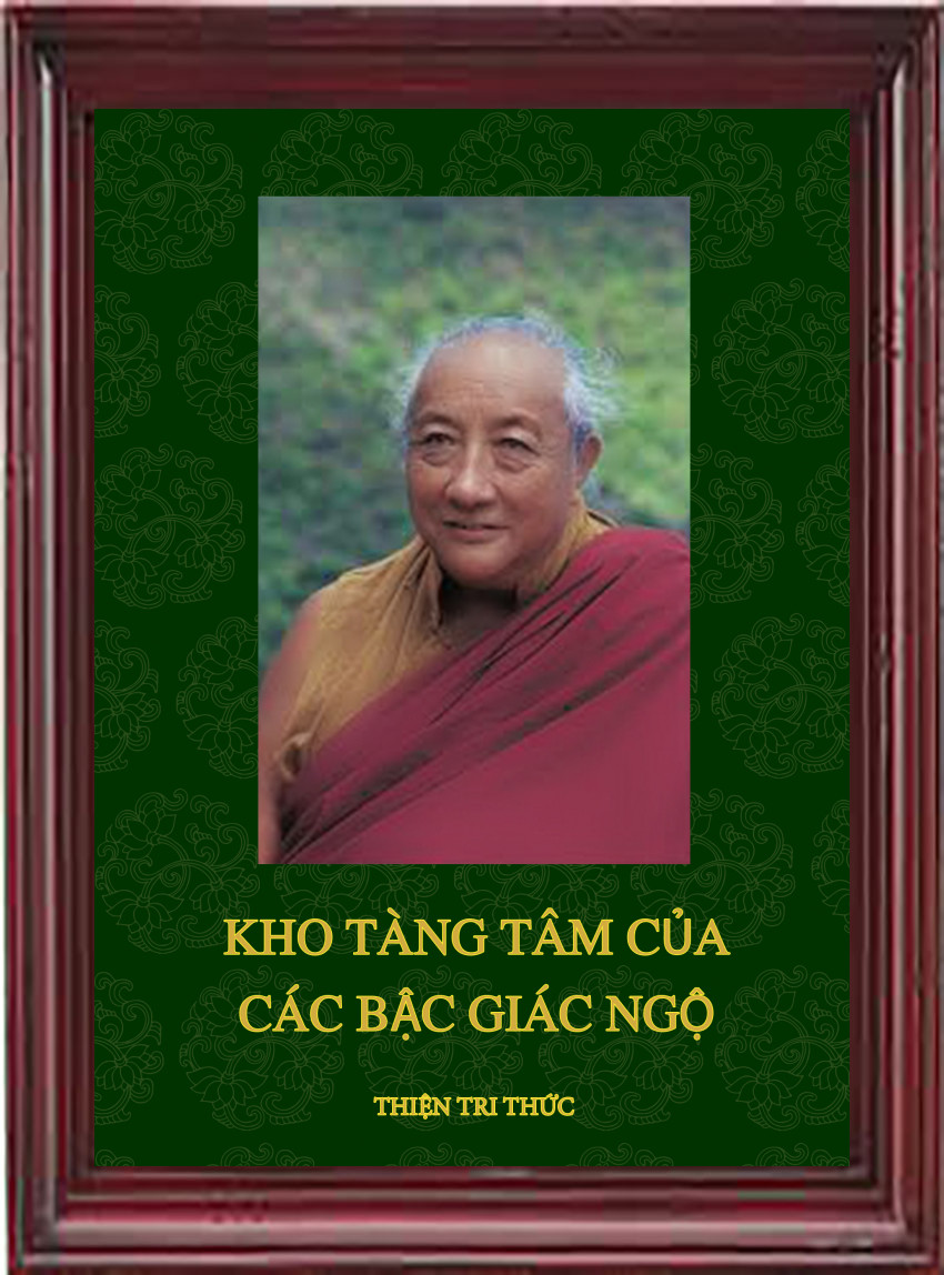 Tôi vui mừng biết rằng bản dịch này về một giải thích ứng khẩu sâu xa do Kyabje Khyentse Dorje Chang về tác phẩm Thog mtha bar gsum du dge ba’i tam của Za Patrul Rinpoche đã được ấn hành dưới tiêu đề: Kho Tàng Tâm của các Bậc Giác Ngộ. Kyabje Khyentse Dorje Chang là vị trưởng phái của dòng phái Cổ Truyền.