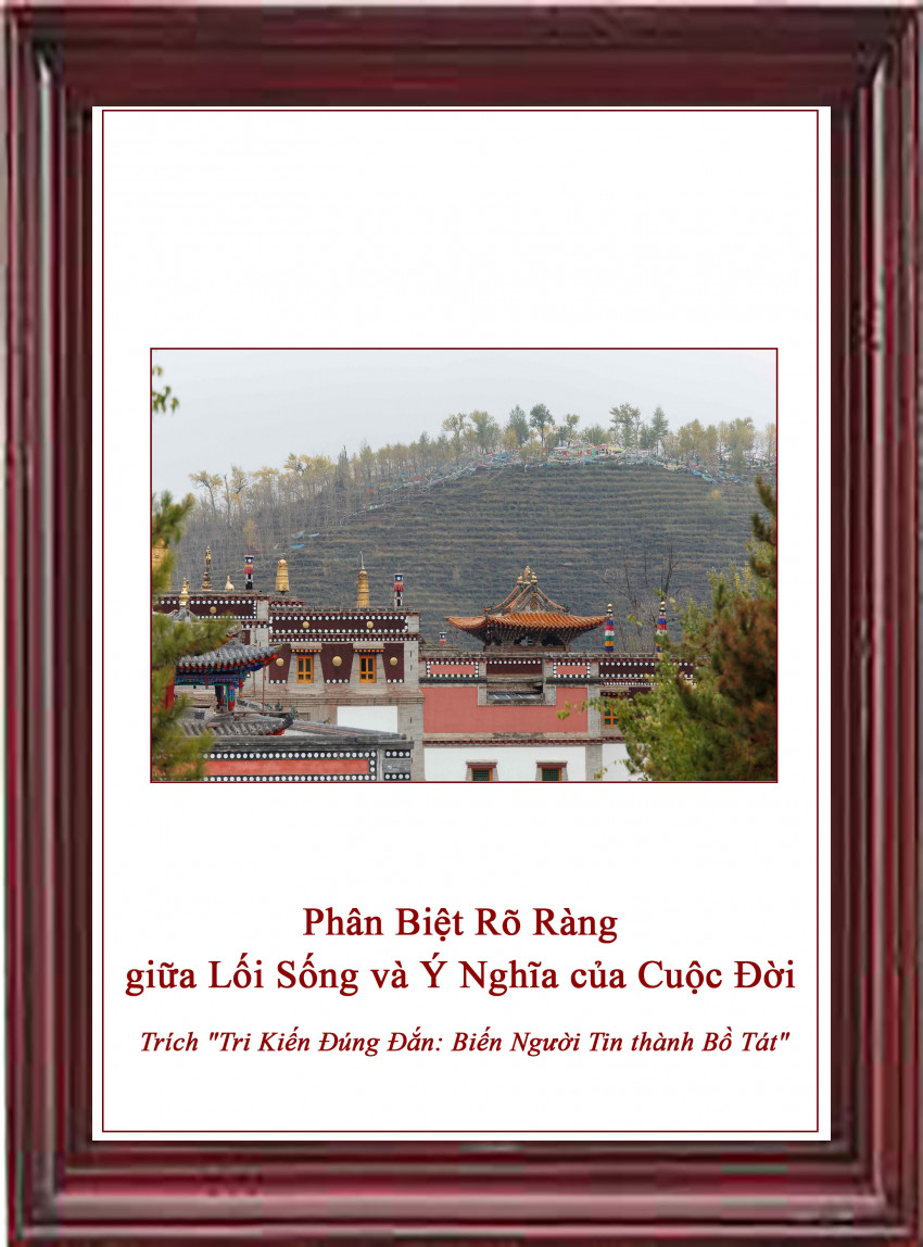 Bởi chúng ta đều đã nghiên cứu các giáo lý của Đức Phật, nên nếu không làm được một trăm phần trăm thì [ít nhất], chúng ta cũng cần nỗ lực hết sức mình để nương theo những lời khuyên của Ngài càng nhiều càng tốt. Bản thân chúng ta sẽ là Phật nếu có thể tuân thủ một trăm phần trăm! Và bước đầu tiên là bắt đầu bằng sự phân biệt được ý nghĩa của cuộc sống với cách sống của ta. Từ nay trở đi, có thức ăn ngon, quần áo đẹp và chỗ ở xa hoa thì những điều này cũng không cho thấy ý nghĩa của cuộc sống. Của cải vật chất và những vật chất thế gian khác chỉ cần thiết để duy trì sự sống. Tuy nhiên, phần lớn những người chưa học hỏi Giáo Pháp không nghĩ vậy. Thậm chí trong triết học, ý nghĩa của cuộc sống và cách sống không thể được phân chia rõ ràng. Chắc chắn, Đức Phật là vị duy nhất thực sự rõ biết về ý nghĩa của cuộc sống.