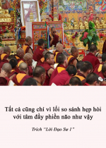 Thầy thấy nhiều người chạy khắp nơi, chỗ này chỗ nọ, khắp ba thời mười phương (Rinpoche cười). Đồng thời họ tạo nên đủ thứ rắc rối, phiền não ở mười phương. Theo Thầy tâm họ tán loạn khắp nơi và họ không biết trụ tâm mình vào đâu nữa. Đó là một tai họa lớn. Thầy có nhiều kinh nghiệm [về vấn đề này]. Vậy xin hãy giữ mình càng khiêm hạ, càng bình dị càng tốt, để có thể dễ dàng làm việc với cái NGÃ và những ý nghĩ không trong sạch của mình...