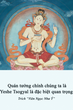 Sự quán tưởng chính chúng ta là Yeshe Tsogyal thì đặc biệt quan trọng và sâu sắc. Bà là phối ngẫu của Guru Rinpoche vừa là đệ tử chính của bậc Đạo Sư. Ngài có một lòng từ ái sâu xa và vô cùng ân cần đối với bà, cũng như tin tưởng rằng năng lực của bà có thể thấu suốt và thực hành các giáo lý của ngài ...