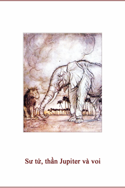Sư tử thường xuyên than phiền với thần Jupiter: “Thật vậy, thưa ngài Jupiter”. Y nói: “sức mạnh của tôi phi thường, hình hài tôi đẹp đẽ, tôi tấn công rất mạnh mẽ. Tôi có đôi hàm đầy những răng, chân tôi đầy móng vuốt nhọn và tôi là chúa tể mọi loài thú vật trong rừng này. Nhưng có một điều nhục nhã thay, tiếng gáy của một con gà trống lại làm tôi sợ hãi. Jupiter trả lời: “Sao ngươi lại trách ta vô lý như vậy? Ta đã ban cho ngươi đủ thứ mà ta có. Lòng can đảm của ngươi chỉ rời xa ngươi trong mỗi tình huống như vậy mà ngươi cũng kêu ca sao?”. Khi nghe Jupiter nói thế, sư tử vẫn cứ làu bàu và than van, tự trách mình hèn nhát, nó chỉ mong chết đi cho xong. Đang khi những ý nghĩ ấy xâm lấn vào trong đầu thì nó bỗng gặp một con voi và tiến lại gần để bắt chuyện...