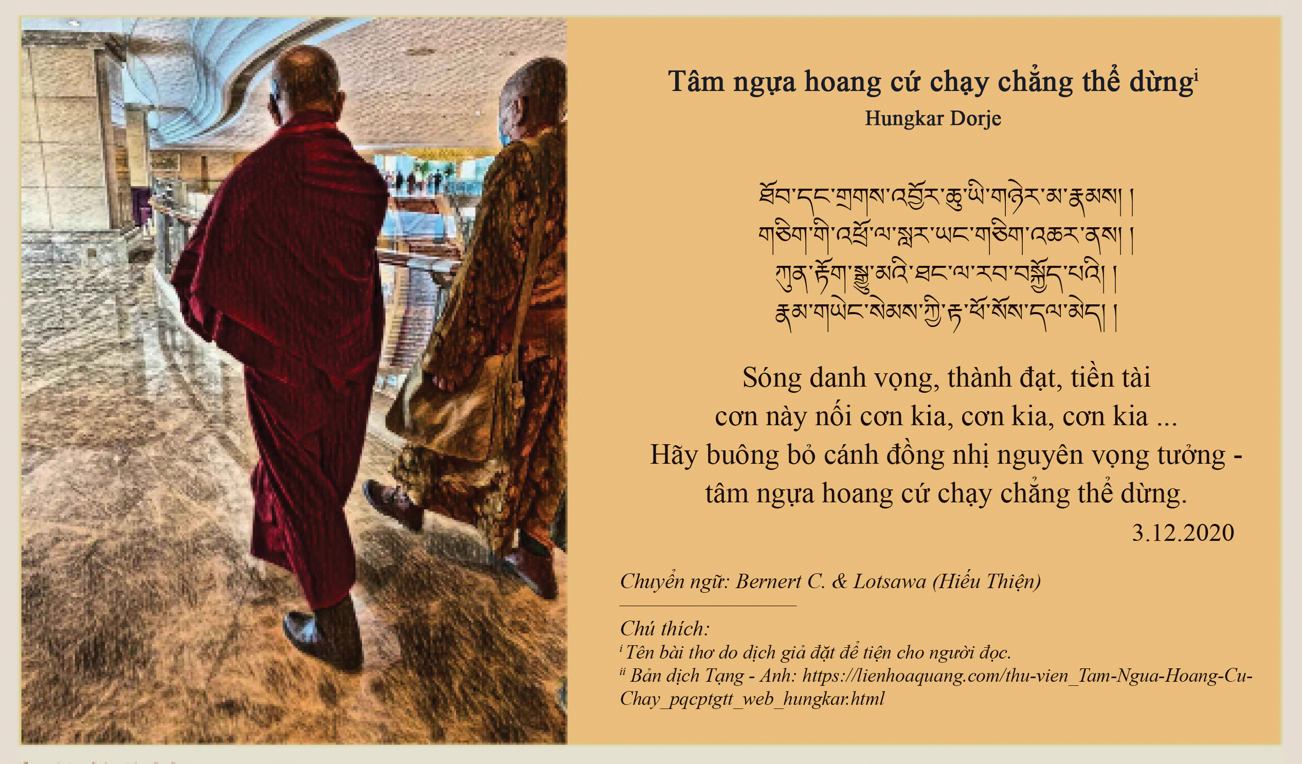 BBT LHQ xin trân trọng gửi tới quý độc giả bài thơ “Tâm ngựa hoang cứ chạy chẳng thể dừng” của Ngài Hungkar Dorje Rinpoche viết và gửi qua Wechat ngày 3.12.2020.