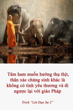 2. Tâm ham muốn hưởng thụ thịt, thân xác chúng sinh khác là không có tình yêu thương và đi ngược lại với giáo Pháp
