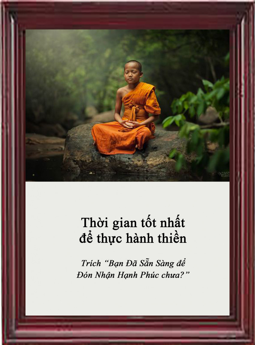 Chúng ta cũng có thể thức dậy sớm hơn một giờ trong buổi sáng sau khi đã đánh răng rửa mặt, hãy hành thiền trong một giờ, nửa giờ hoặc thậm chí là hai mươi phút. Bằng cách điều chỉnh tâm của mình trước khi đi làm, tâm sẽ có thể tĩnh lặng trong suốt một ngày; điều này chắc chắn là một điểm thuận lợi cho bất cứ việc gì chúng ta thực hiện trong ngày.