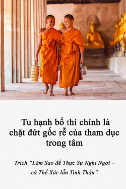 "Chừng nào chúng ta còn nuôi tâm tham, chưa chặt đứt gốc rễ của nó, thì ta chưa tu hạnh bố thí đúng nghĩa. Vì vậy, tu hạnh bố thí chính là chặt đứt gốc rễ của tham dục trong tâm."