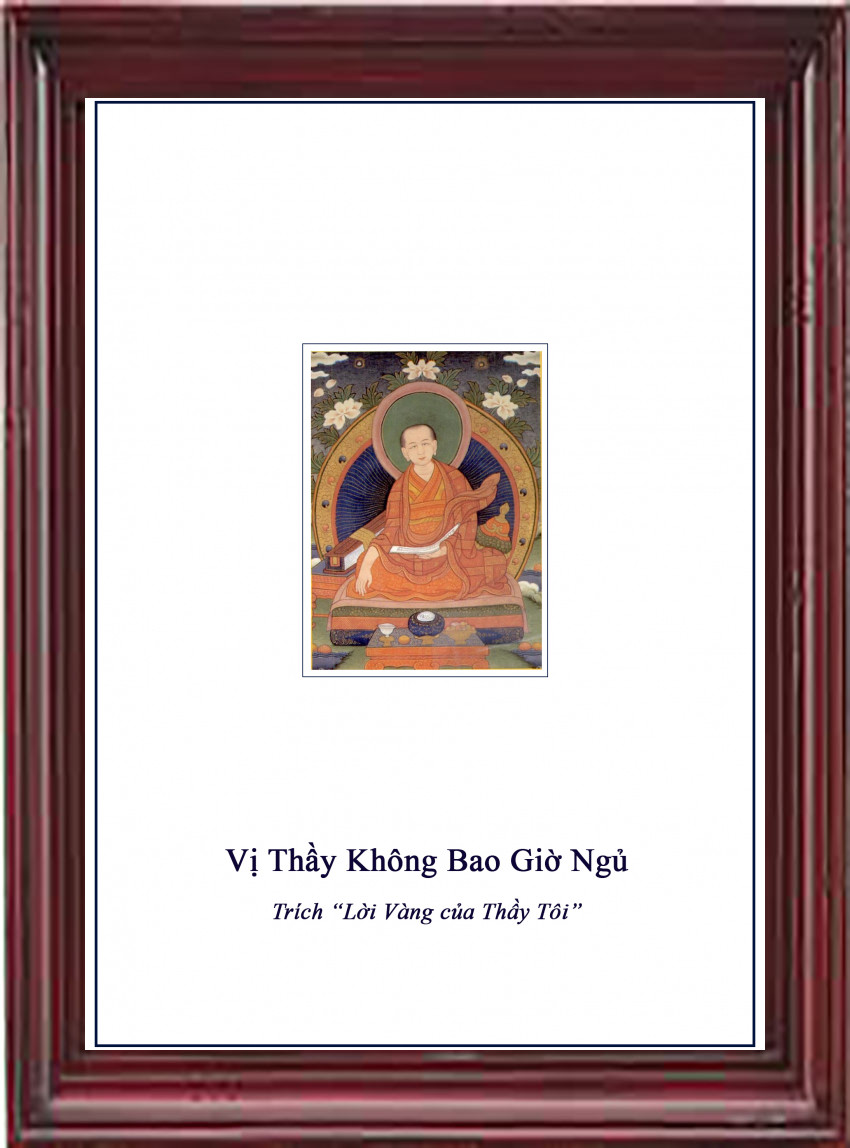 “Vâng, con sẽ nghỉ ngơi,” Ngài Chengawa trả lời. “Nhưng khi con nghĩ thật khó khăn biết bao để tìm được những điều kiện tự do và thuận duyên mà chúng ta đang có, thì con không có thời giờ nào để nghỉ ngơi.” Ngài trì tụng chín trăm triệu lần câu thần chú của Miyowa và không ngủ suốt cuộc đời Ngài. Chúng ta phải thiền định cho đến khi nào một lòng xác tín y hệt như vậy thực sự trổi dậy trong tâm thức chúng ta.
