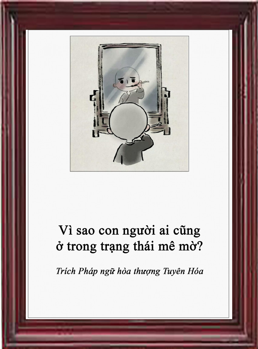 Vì sao con người ai cũng ở trong trạng thái mê mờ? Đó là do họ không hiểu được mình từ đâu tới, chết đi về đâu. Mỗi ngày bóng dáng bạn thấy khi tự soi gương nào phải là bạn. Nếu bạn muốn biết bản lai diện mục (chân tâm) thì phải quay mặt soi lòng, tìm nơi tự tâm. Người đời thì bị ngũ dục làm mê mờ, ngày ngày bị tiền tài, sắc đẹp, danh vọng, ăn uống, ngủ nghỉ kềm tỏa đến ngột ngạt khó thở, song họ vẫn cứ muốn cam tâm tình nguyện làm nô lệ cho những thứ ấy.