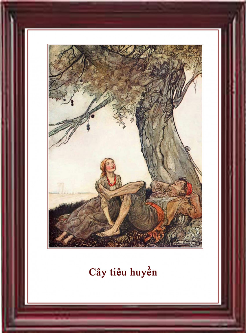 Có hai người du khách, đi dưới trời nắng, tìm kiếm một bóng cây to để nghỉ mát. Khi họ nằm nhìn lên tán cây mát rượi, họ mới nhìn ra đó là một cây Tiêu Huyền.