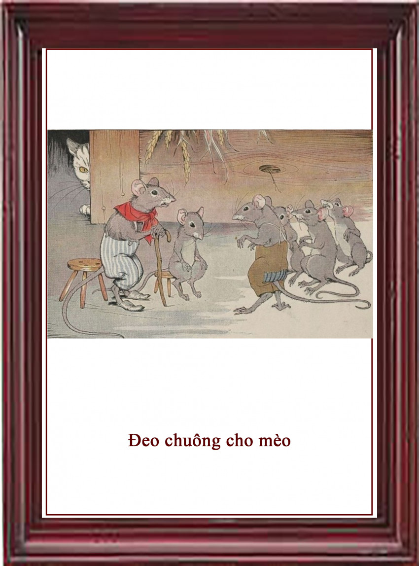 Ngày xưa, loài chuột có cả một tổng hội đồng để họp bàn các phương án có thể sử dụng để đối phó với kẻ thù chung, là mèo. Con thì nói thế này, con thì nói thế kia, nhưng cuối cùng một con chuột nhắt đứng dậy và bảo nó có một đề nghị mà nó cho là phù hợp. “Các bạn sẽ đồng ý ngay,” nó bảo, “mối nguy hiểm chính của chúng ta nằm ở cái sự kín đáo gian manh của kẻ thù khi nó tiếp cận chúng ta. Bây giờ, nếu chúng ta có được một tín hiệu gì đó báo cho chúng ta biết khi nó đến, chúng ta sẽ dễ dàng chạy thoát nó. Vì vậy, tôi mạo muội hiến kế là, chúng ta sẽ tìm một cái chuông nhỏ, gắn vào một cái dây đeo quanh cổ con mèo. Bằng cách này, khi nào nó đi đâu chúng ta cũng sẽ biết, và dễ dàng lẩn trốn khi nó đến gần.”