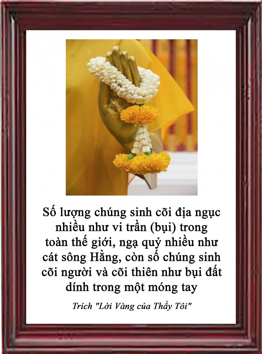 Số lượng chúng sinh cõi địa ngục nhiều như vi trần (bụi) trong toàn thế giới, ngạ quỷ nhiều như cát sông Hằng, còn số chúng sinh cõi người và cõi thiên như bụi đất dính trong một móng tay