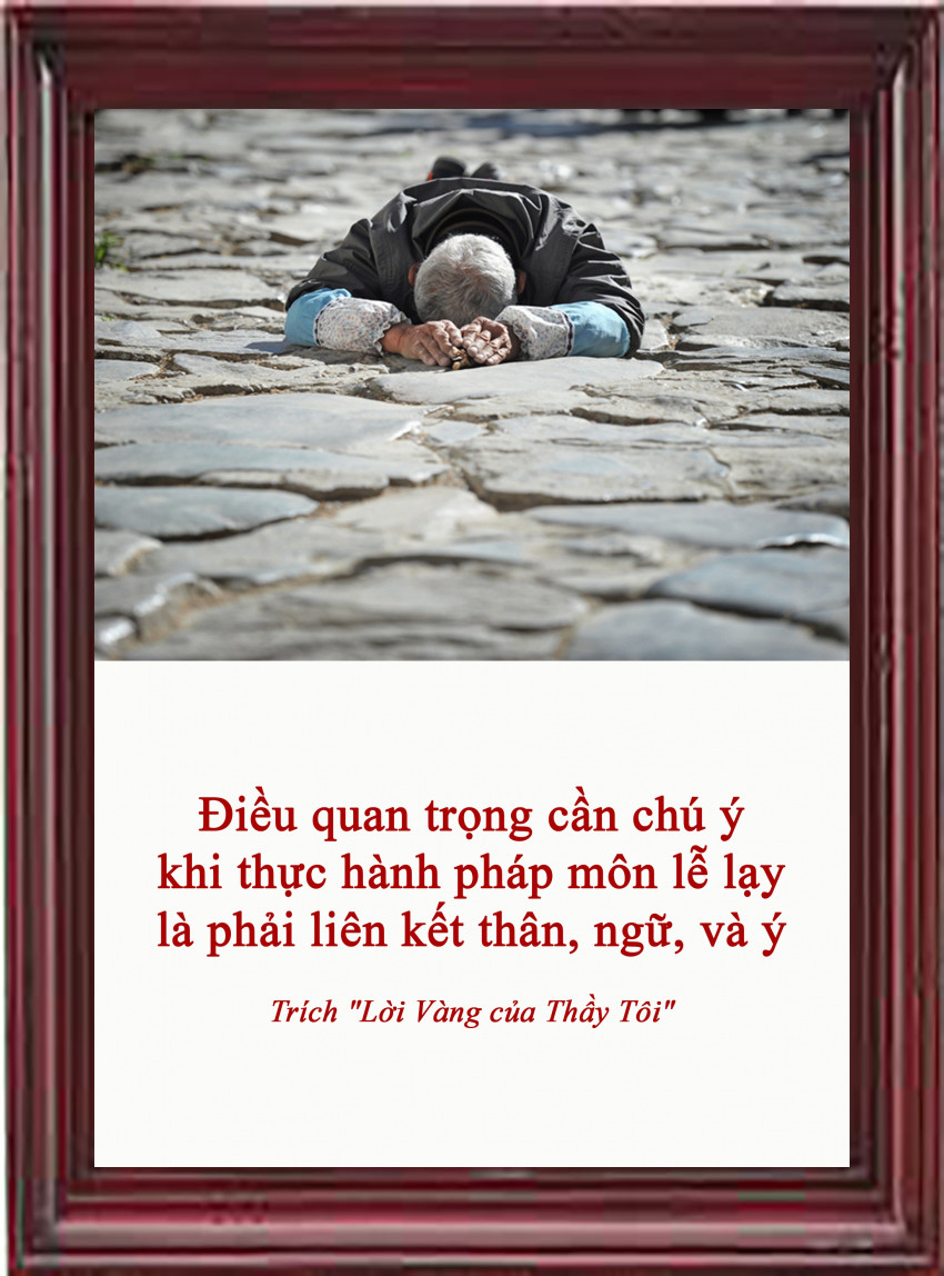 Điều quan trọng cần chú ý khi thực hành pháp môn lễ lạy là phải liên kết thân, ngữ, và ý